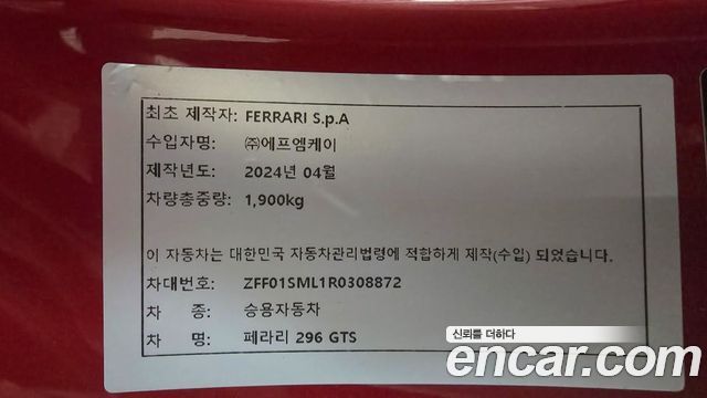 Ferrari 296 из Кореи Encar